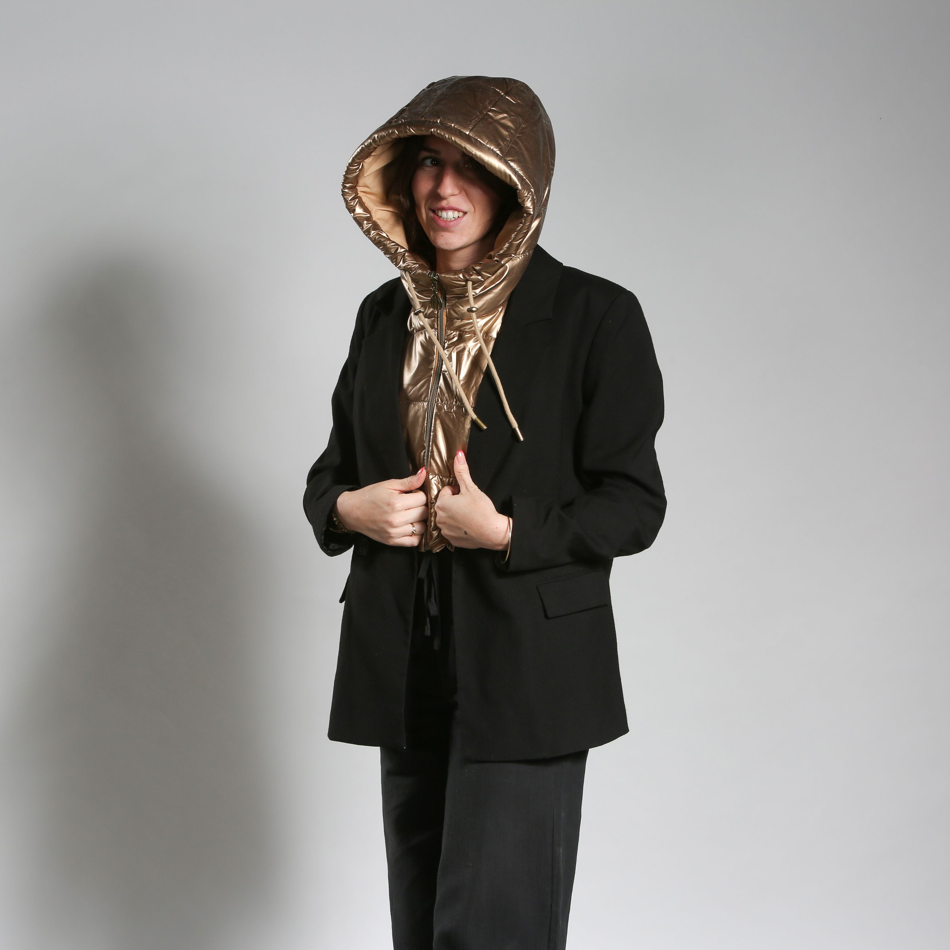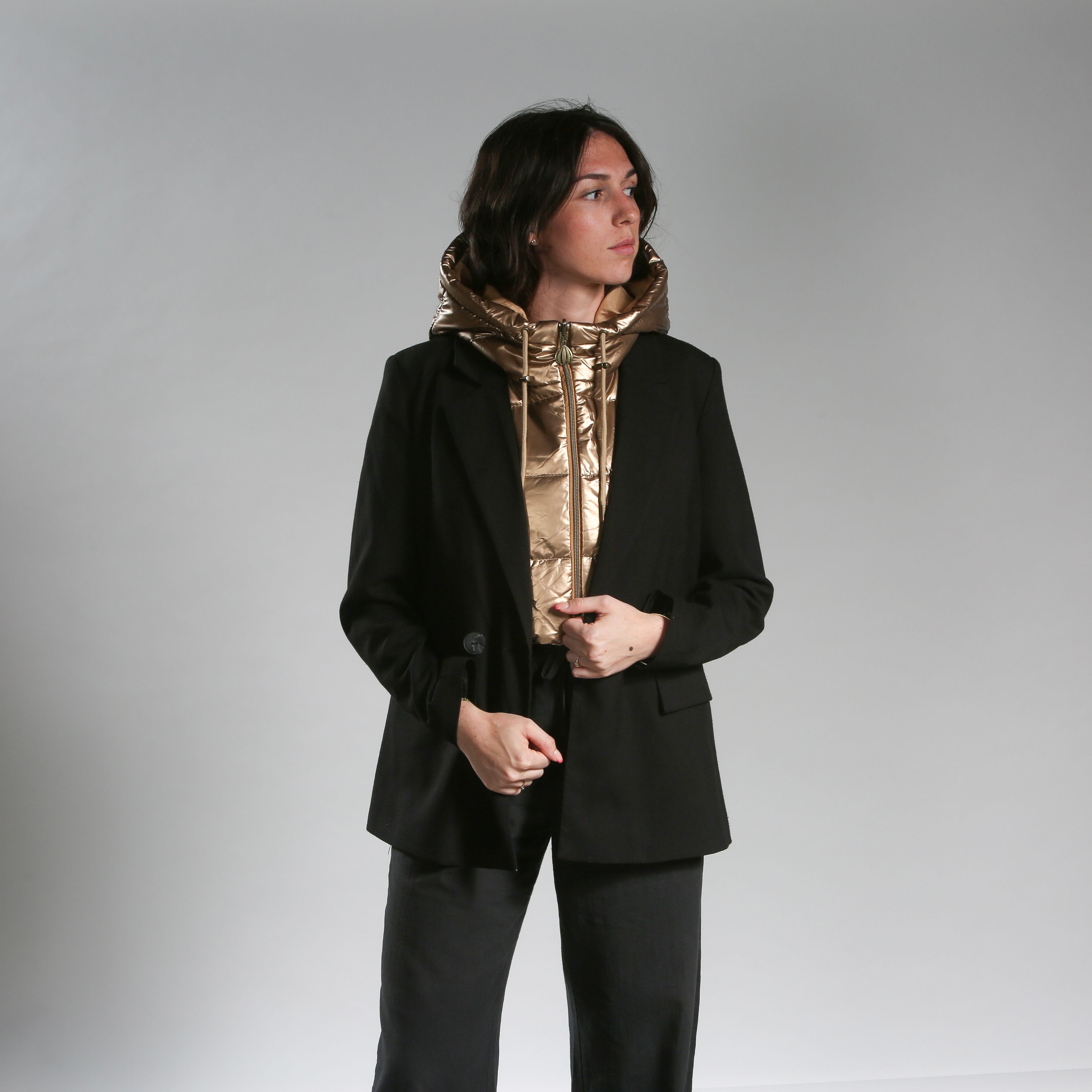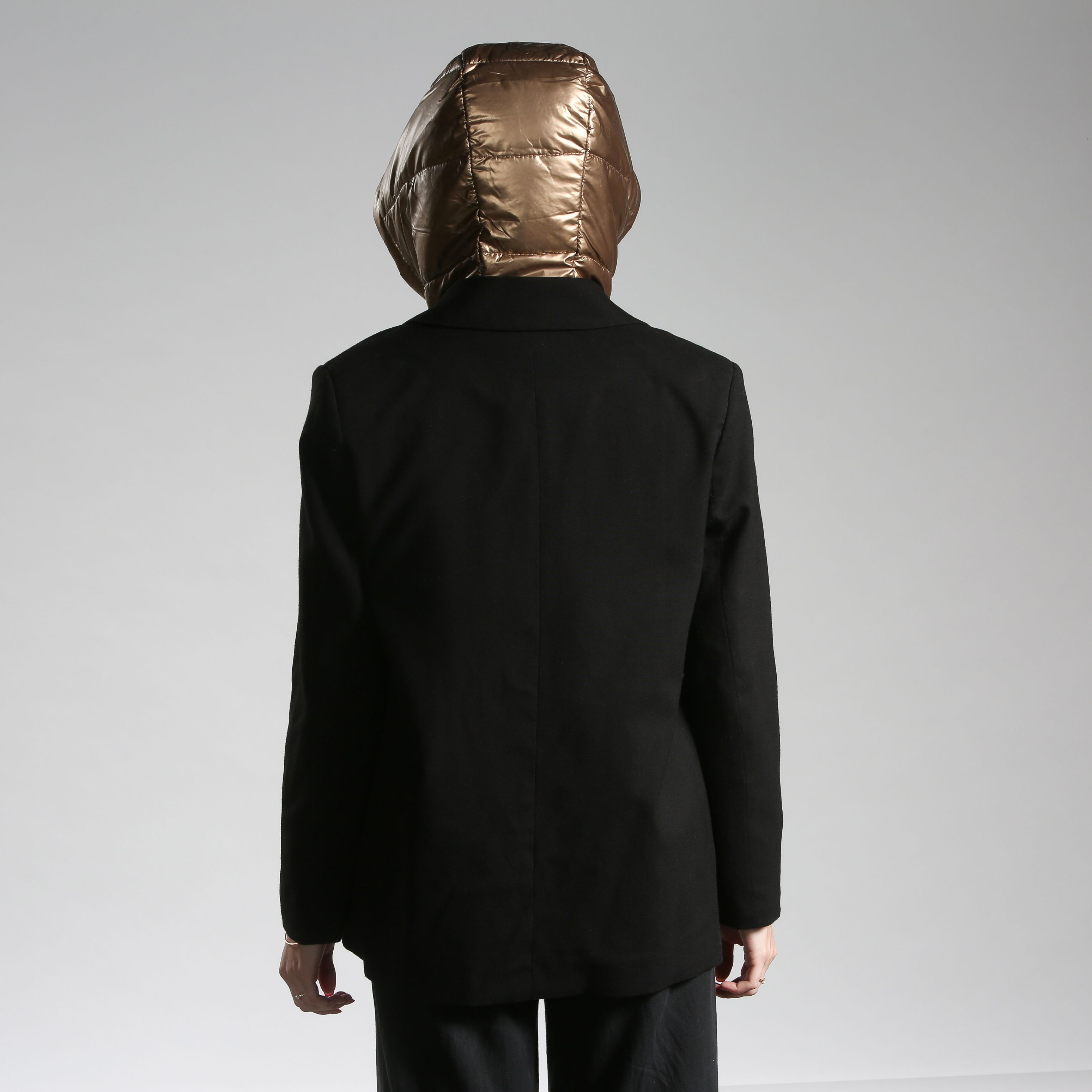 Discover comfort and style with this hooded puffer jacket. Made from soft, quilted puffer fabric, it offers warmth and lightness. Its solid color gives it a sleek look that's easy to wear every day. The hood adds extra protection against the cold, while its straight cut ensures optimal ease of movement. Perfect for facing cool days with elegance and simplicity.